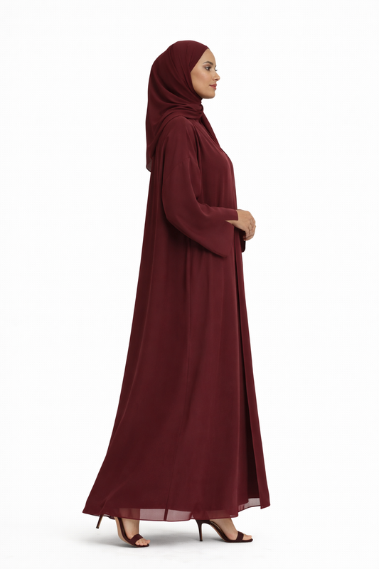 Chiffon Abaya 4 Piece Set - Bordeaux